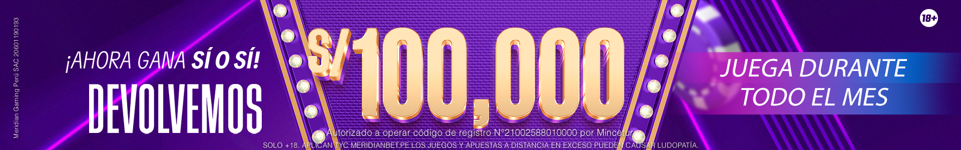 SOLO JUGADORES DE 18 AÑOS QUE RESIDAN EN PERU. JUEGUE RESPONSABLE, Los juegos y apuestas deportivas a distancia realizados en exceso pueden causar ludopatía, SI TIENE DUDAS CONTACTARNOS AQUÍ. LOS JUEGOS DE AZAR REALIZADOS CONSTANTEMENTE PUEDEN SER DAÑINOS PARA LA SALUD “ART. 51 DE LA LEY 27153”.